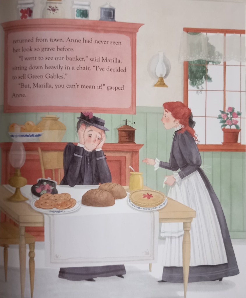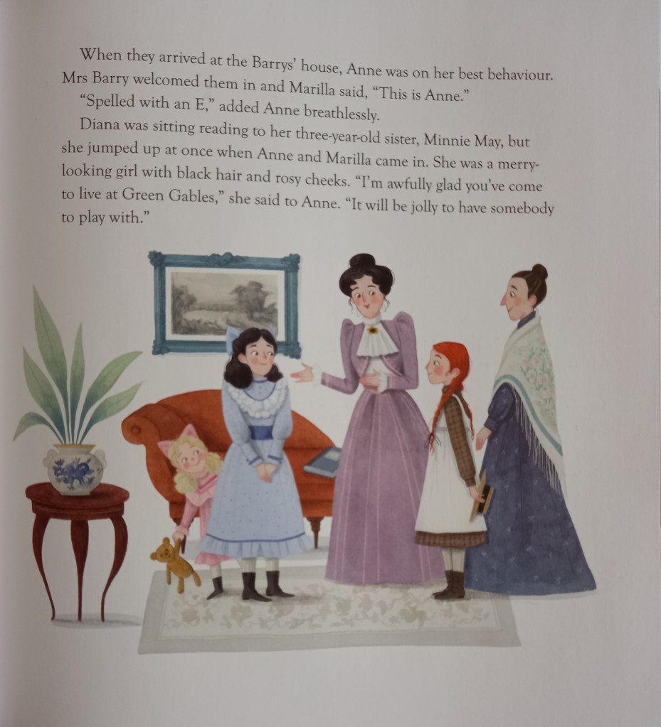 But Anne of Green Gables is about words. Anne’s vocabulary as her imagination and daydreams enter the public domain is one of the book’s important facets. Her language is what sets Anne apart from her classmates. How on earth could Katherine Woodfine retell and simplify the story without losing their power? In a word, she does it brilliantly.